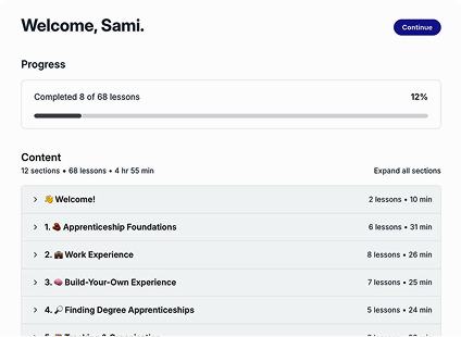 | 7. Apprenticeship Pathways | 7 | Application walkthroughs, higher/degree apprenticeship comparisons, interview prep |